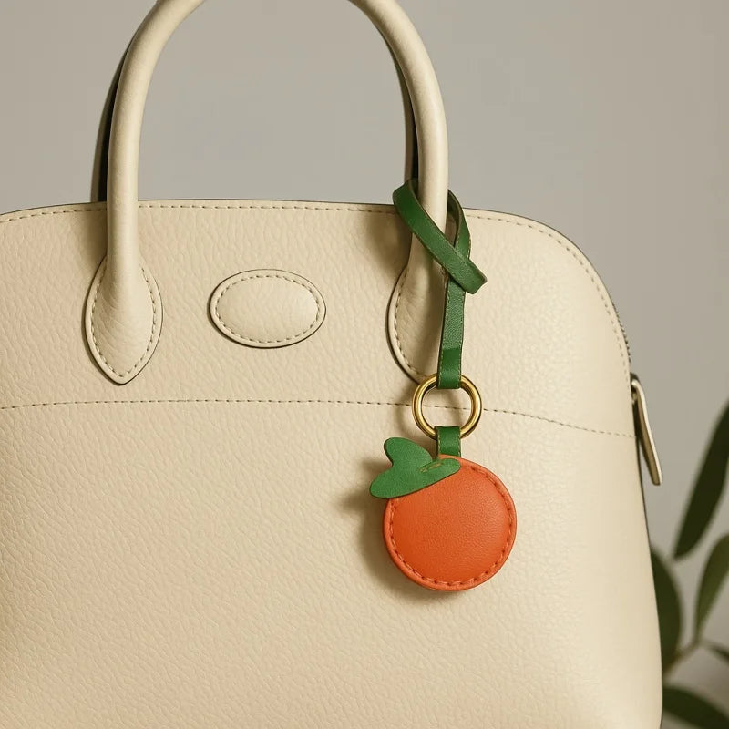 This Orange Leather Bag Charm is crafted from premium handmade cowhide, combining durability with a playful design. The round orange shape in bright, cheerful tones is accented with fresh green leaves, creating a natural and refreshing look. Carefully hand-stitched, each piece highlights artisanal craftsmanship, ensuring uniqueness and lasting quality. Designed as both a keychain and a bag charm, it is versatile for handbags, totes, or backpacks, adding a fun yet elegant detail to your daily accessories. Perfect as a gift for friends, couples, or yourself, this charm not only serves as a practical accessory but also conveys good luck and joy. Whether used for casual outings, travel, or daily work bags, it is a stylish way to showcase personality and brighten your look.
