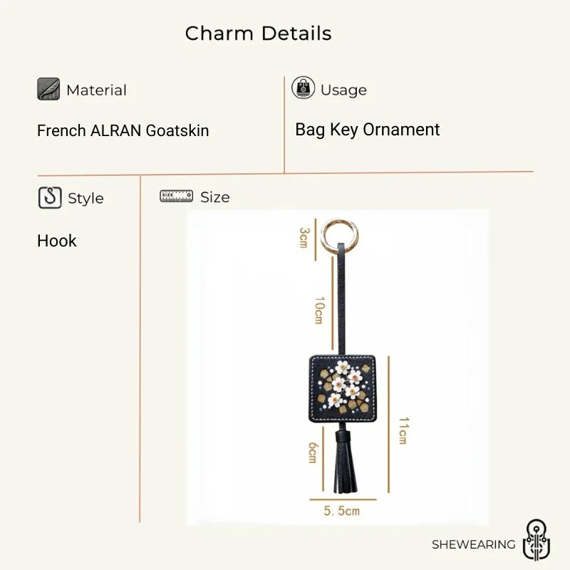 Original Design Hand-Embroidered Floral Tassel Bag Charm | Premium French Lambskin Leather Key Fob | Sophisticated Accessory Gift for Her