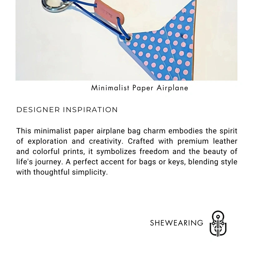 Elevate your accessories with the JE01 Premium Leather Printed Paper Airplane Charm, a harmonious blend of creativity, simplicity, and craftsmanship. Inspired by the timeless joy of paper airplanes, this charm features vibrant prints and a sleek triangular design, symbolizing freedom and imagination.
