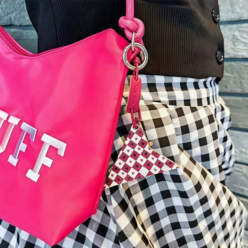Crafted from full-grain cowhide leather, it offers durability and a soft touch, while the intricate prints add a playful and modern aesthetic. Its lightweight structure makes it an ideal companion for your bags, keys, or car, adding a touch of whimsical charm to your everyday essentials.
