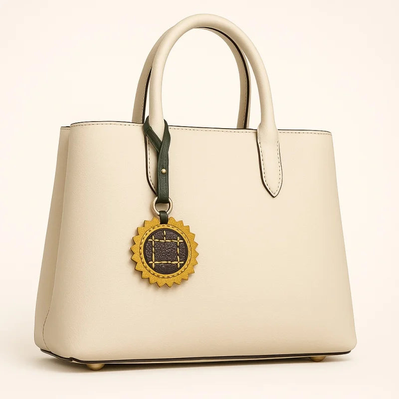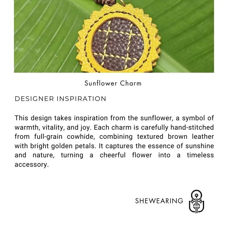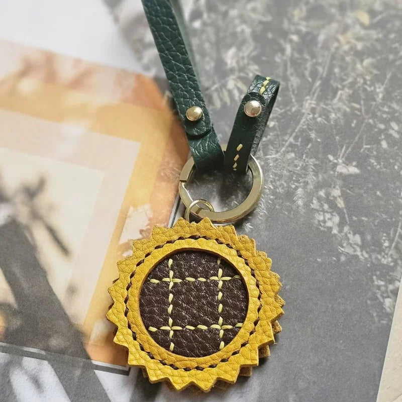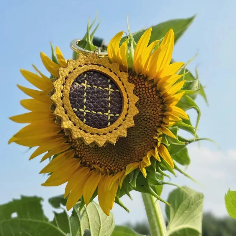 Sunflower Leather Bag Charm – Handmade Full-Grain Cowhide Pendant | Cute Sunflower Keychain | Creative Handcrafted Gift for Couples & Women