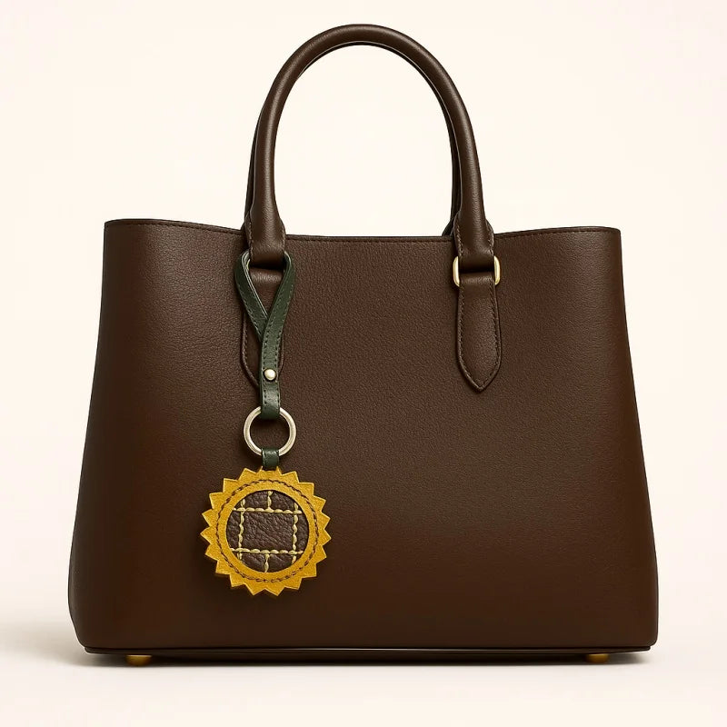 Brighten your everyday style with the Sunflower Leather Bag Charm, a handmade piece crafted from premium full-grain cowhide. Featuring a layered petal design in golden yellow paired with a rich brown textured center, this charm reflects artisanal skill and timeless charm. Each petal and stitch is carefully cut and sewn, creating a lively, three-dimensional look that celebrates nature’s beauty. The sturdy design makes it versatile for handbags, totes, or backpacks, while the attached keyring adds the option of use as a keychain. Lightweight yet durable, it is perfect for daily wear and gifting. The sunflower, long seen as a symbol of positivity and affection, makes this charm a thoughtful present for couples, friends, or anyone who loves unique, handcrafted accessories. More than just decoration, it embodies the spirit of slow fashion and artisanal craftsmanship, radiating happiness and creativity with every detail.