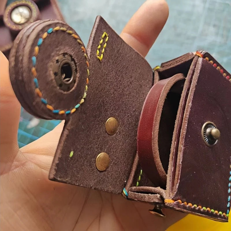 Vintage Camera Leather Bag Charm – Handmade Full-Grain Leather Mini Case | Retro Keychain & Lipstick Holder | Artistic Gift for Collectors