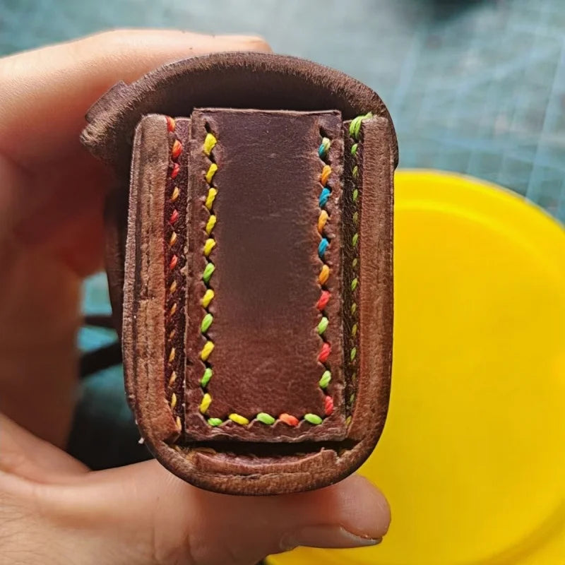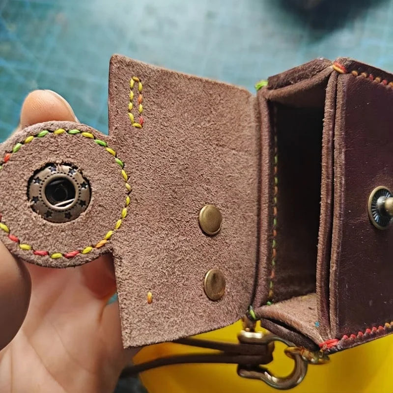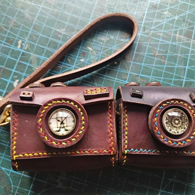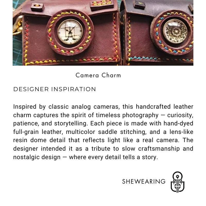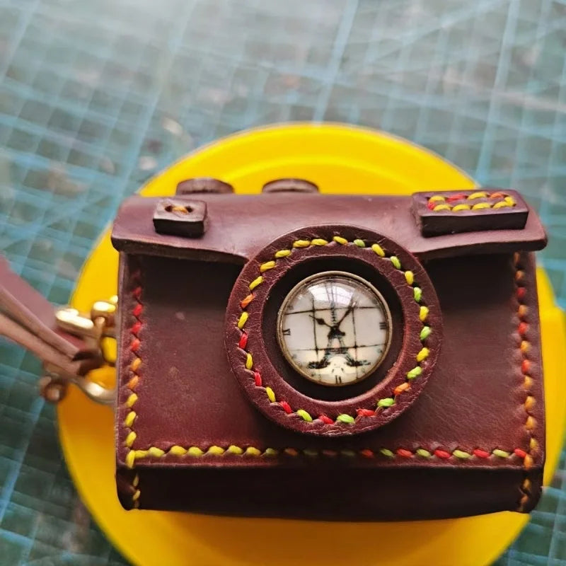 The Vintage Camera Leather Bag Charm is a true conversation piece for those who appreciate artistry and individuality. Handmade from premium full-grain cowhide, each charm is carefully stitched with colorful thread, blending playful detail with sophisticated craftsmanship.