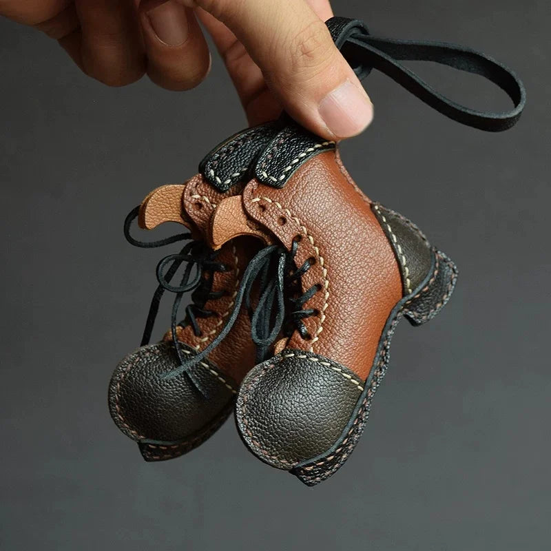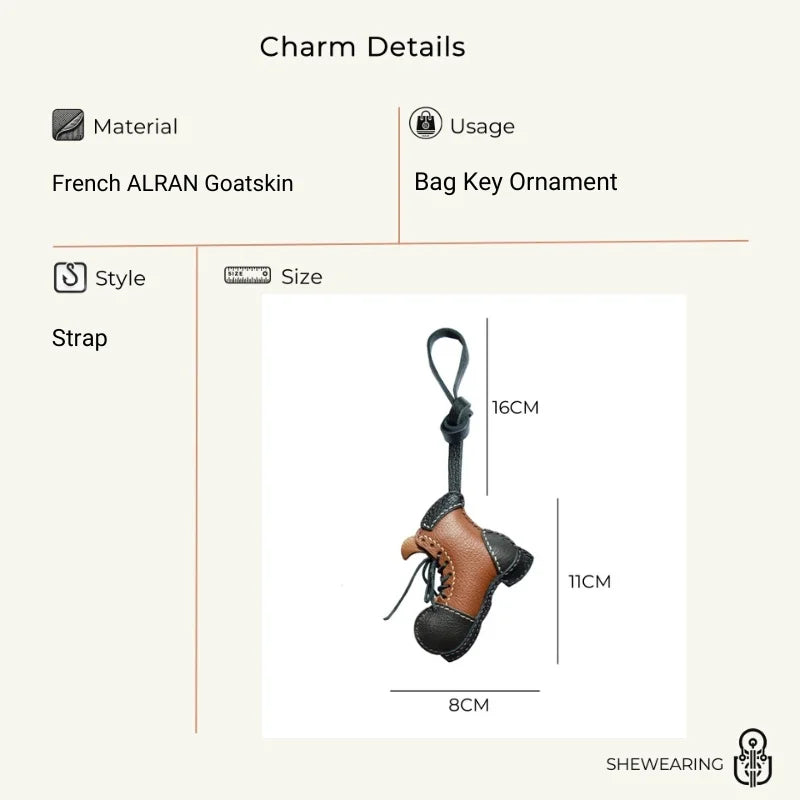 Designed for durability and daily use, the charm adds character to any bag while remaining lightweight and comfortable to carry. The handmade laces, layered panels, and textured leather surface all contribute to its authentic miniature-boot aesthetic. Whether styled with a tote, a canvas travel bag, or used as a key holder, it enhances everyday routines with a playful yet refined touch.