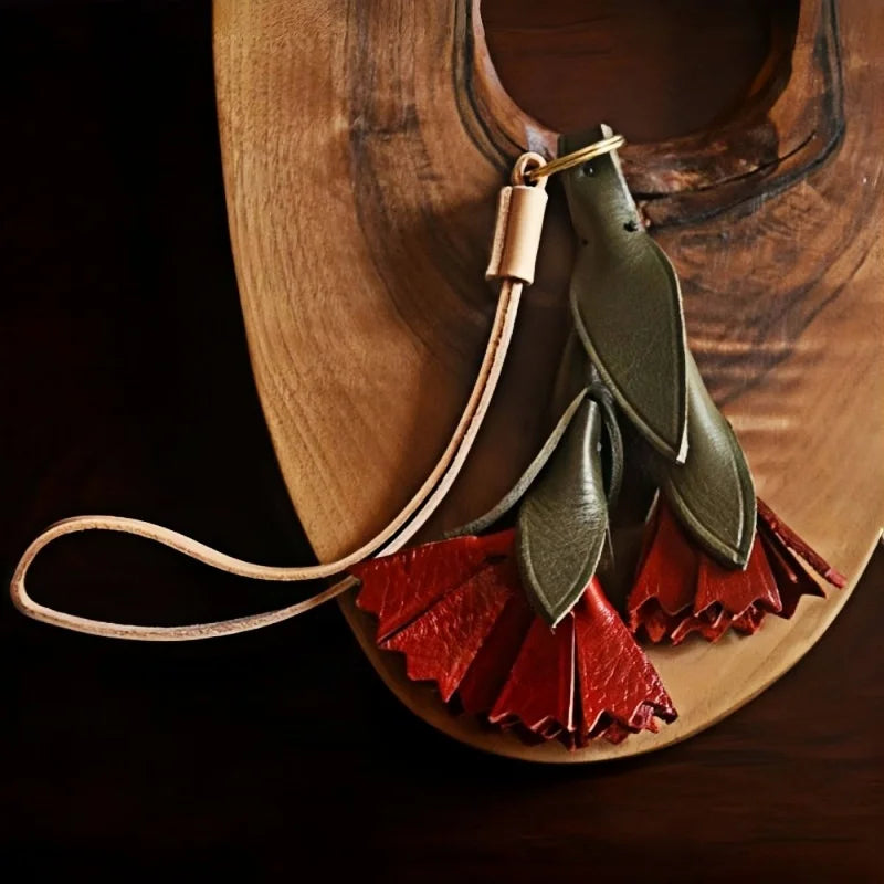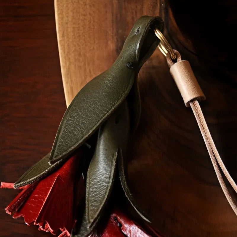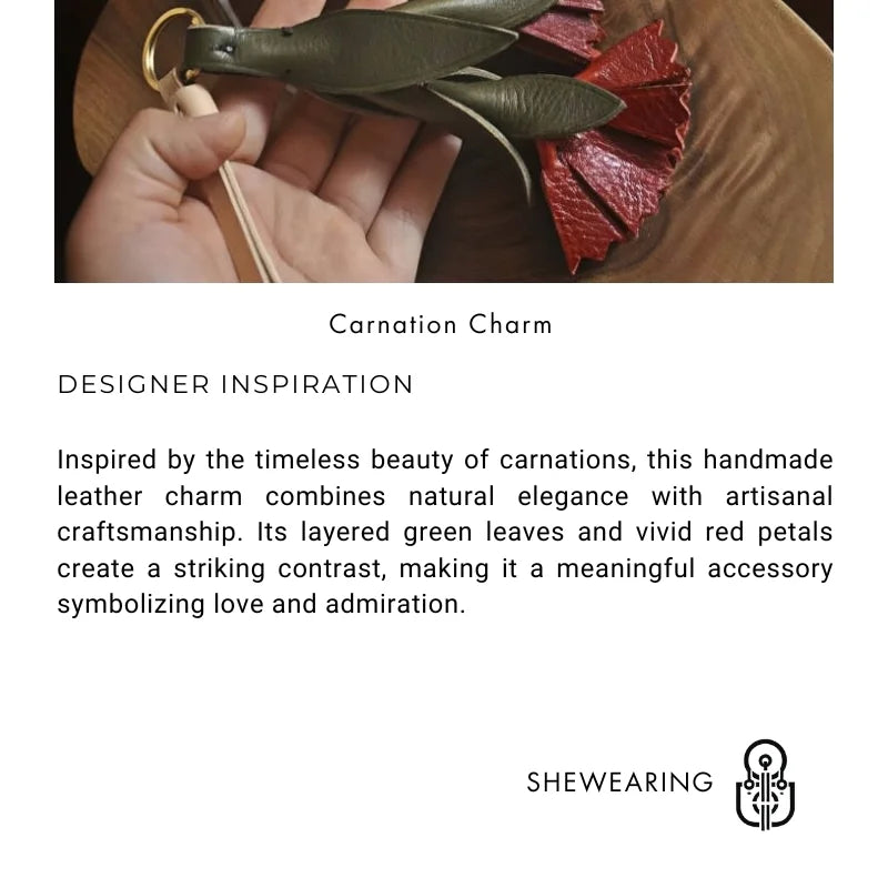 The Vintage Leather Carnation Bag Charm is a celebration of nature and craftsmanship. Expertly handcrafted from premium full-grain cowhide, it captures the lifelike form of a blooming carnation with carefully layered green leaves and textured red petals. The 3D design adds depth and elegance, making it a standout accessory for handbags, totes, or keychains. Each petal is hand-cut and stitched with precision, highlighting the artisanal quality and durability of genuine leather. Beyond its decorative appeal, the carnation carries symbolic meaning—representing love, admiration, and gratitude—making it a thoughtful gift for women on special occasions. Its versatile style blends seamlessly with modern or vintage aesthetics, making it a unique piece to complement everyday fashion while adding a personal touch of artistry.