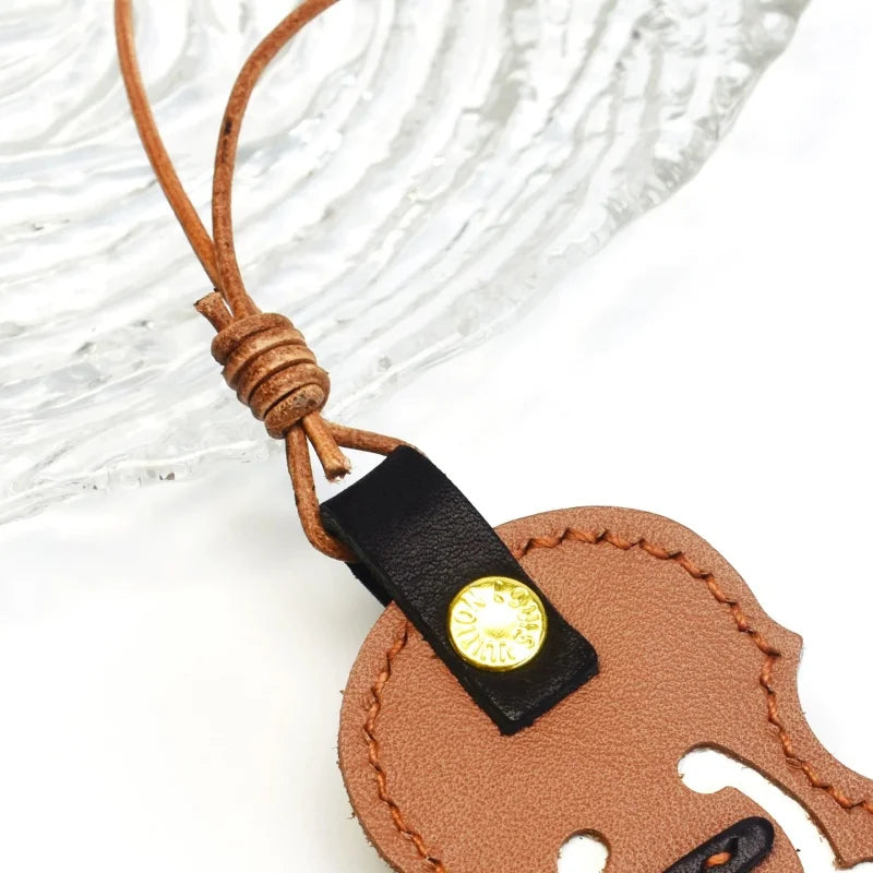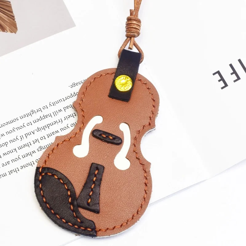 Vintage Violin Leather Bag Charm – Handmade Full-Grain Cowhide Pendant | Classical Music-Inspired Keychain for Bags | Retro Artisan Gift